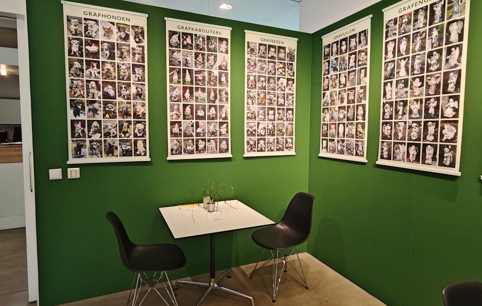 Arnold Weel fotografeert de dingen die mensen op graven zetten: dierenbeeldjes, boeddha’s, engelen, harten, voetballen en kabouters. Zorgvuldig zijn de bij elkaar passende beelden in een raster gezet. Dat benadrukt overeenkomsten en verschillen. De unieke beeldjes zijn types geworden, maar als je oplet ontdek je aandoenlijke details. Zijn werk hangt in de Tuinzaal en is het decor van de Koffie en Cakelezing. Daarnaast gaat hij in op de tot stand koming van deze unieke fotoserie.