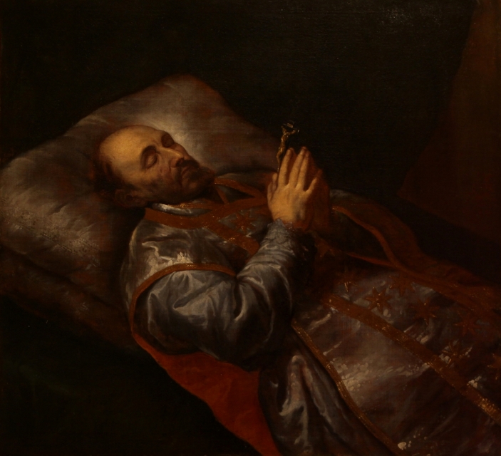 A priest on his deathbed. He wears a chasuble with maniple, which indicates his high rank. The painting is on loan from the Dutch Order of Jesuits. They believe that this painting depicts their founder Ignatius of Loyola (1491-1556). However, that is unlikely and the deceased remains anonymous, just like the painter. Thebeautifully painted work is from the seventeenth century. It is one of the few death portraits in Dutch museums.
