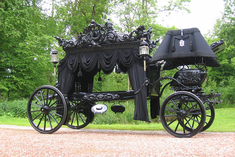 Before 1800, the funeral coach was used only for the highest class. Most of the dead were brought to the cemetery by stretcher. The number of funeral coaches increased rapidly in the nineteenth century when cemeteries began to be built outside the cities. Carriages came in different classes, the most luxurious was the 1st class state carriage. Only two of them have survived in the Netherlands, one of which is in the collection of Museum Tot Zover (currently in storage).