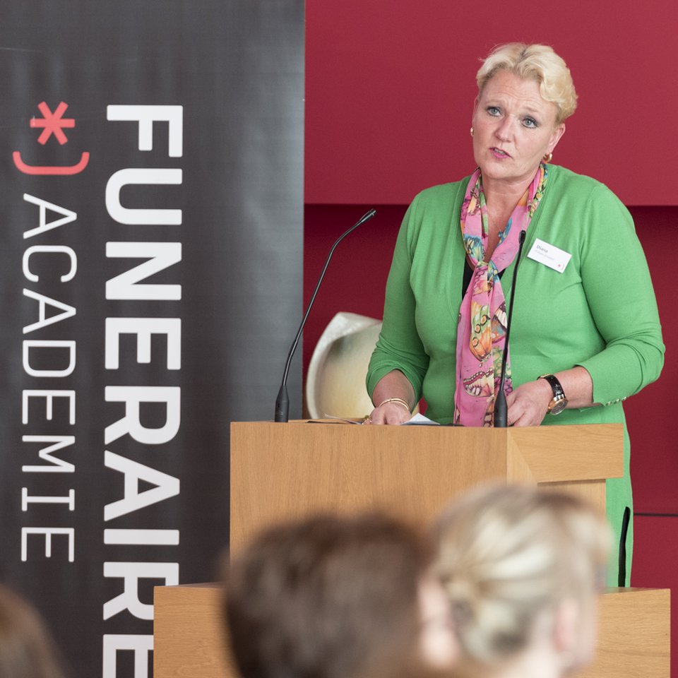 Bruin heeft naar aanleiding van haar onderzoek verschillende tips voor uitvaartondernemers en ritueelbegeleiders in de zaal: