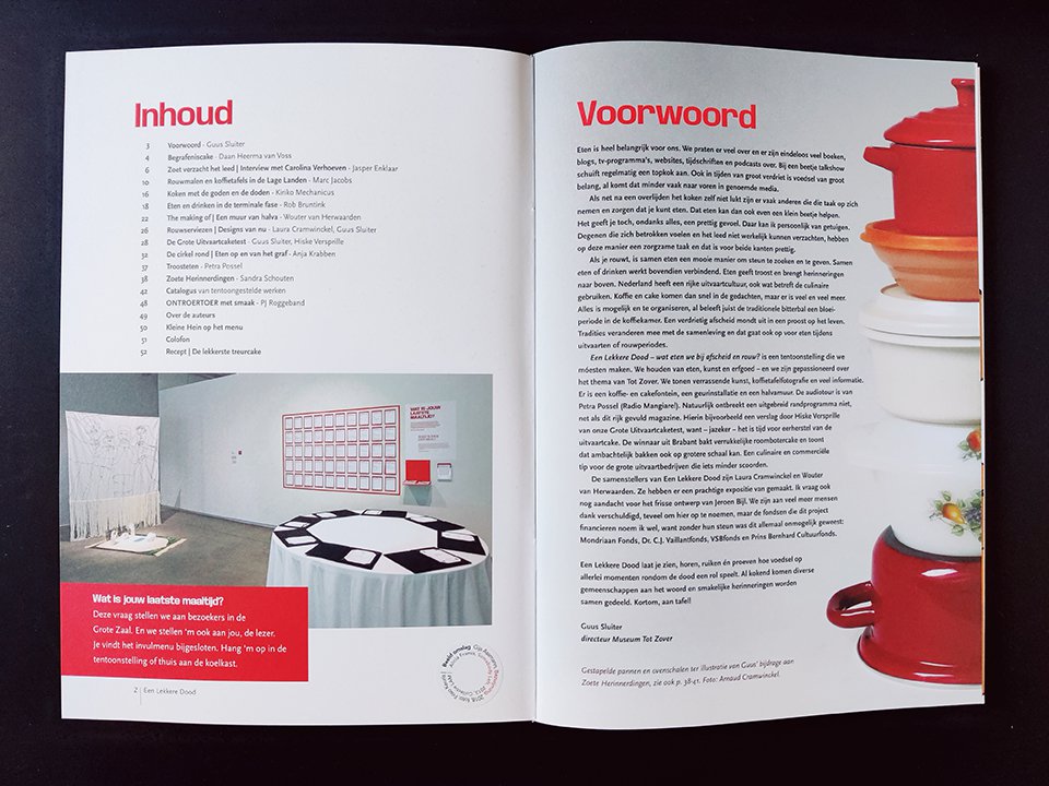Cover tentoonstellingsmagazine Een Lekkere Dood. Ontwerp: Marleen Luiten