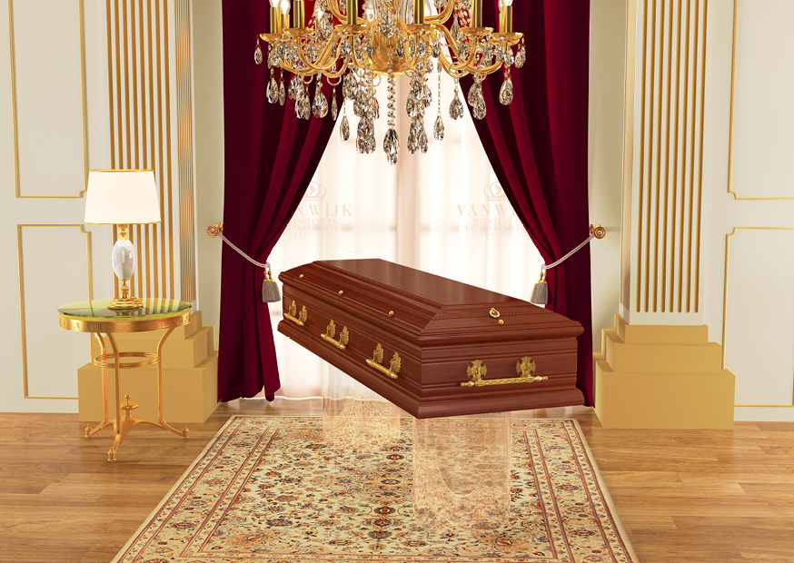 De uitvaart is onze last minute of fame, dus alleen het beste is goed genoeg. Samen met een uitvaartleider blader je aarzelend door de kistcatalogus: “Heeft u een voorkeur voor massief eiken of spaanplaat met fineer? U kunt ook een meer persoonlijke kist kiezen uit onze Trendylijn.” Om die keuze te versoepelen fotograferen kistfabrikanten hun producten op hun best. Maar kun je het meest gevreesde object er aantrekkelijk uit laten zien? Historische en hedendaagse productfotografie weerspiegelen deze ingewikkelde paradox.