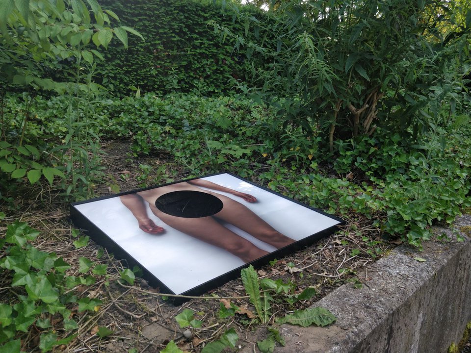 In de tuin is de foto-installatie Overgave (2021) te zien ; "een poetisch en direct beeld, dat gaat over gevoelens van angst en leegte tegenover het geruststellende en relativerende besef dat we onderdeel zijn van de eindeloze cyclus van leven en dood“, zegt de kunstenaar.