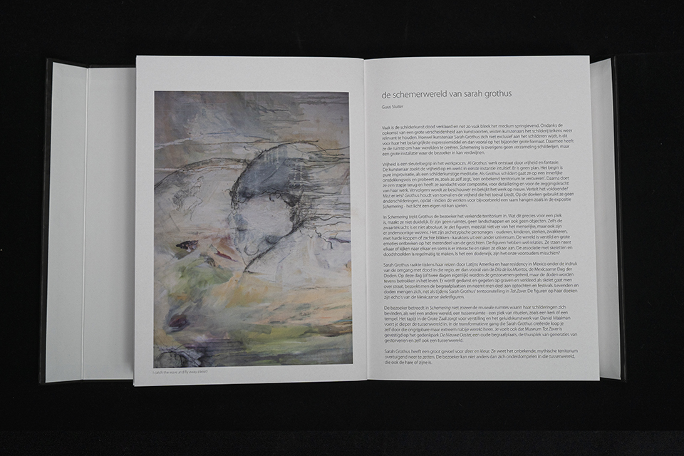 Bij de tentoonstelling Schemering verschijnt een gelijknamig boek. Het boek bevat veel foto’s van het werk van Sarah Grothus, plus haar gedicht uit de tentoonstelling Schemering, een inleiding door museumdirecteur Guus Sluiter en essays van kunstcriticus Cees de Boer en filosoof René Gabriëls.