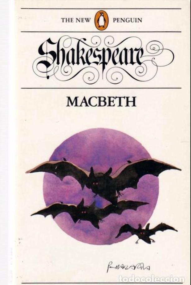Vleermuis-illustratie, boekomslag Shakespeare's Macbeth, Penguin uitgave 1985