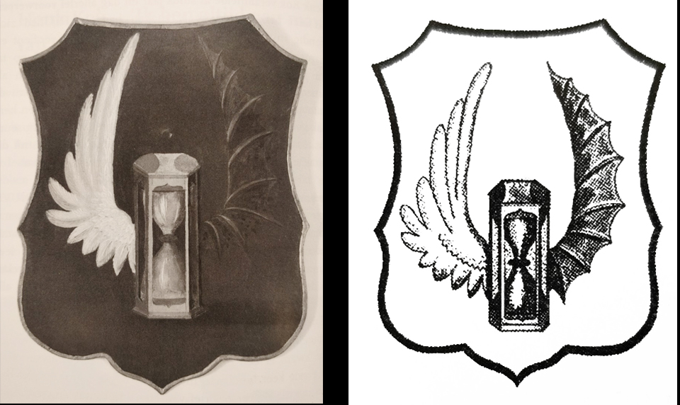 Het gevleugelde doodshoofd is geen onbekende in de funeraire kunst, zo komt hij sporadisch voor op grafstenen. Kunsthistorici gissen naar de origine van dit gevleugelde doodshoofd. Op grafstenen wordt het doodshoofd doorgaans afgebeeld met gevederde vleugels (van cherubijnen wellicht?). Dit traditionele middeleeuwse symbool verwijst zowel naar het onvermijdelijke, als naar het herscheppende element van de dood: de ziel die naar de hemel vliegt. Maar let wel, vleermuisvleugels hebben een vlies, geen veren. Die connotatie zal ongetwijfeld grimmiger zijn.