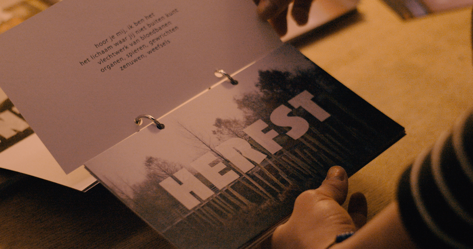 Deze dichtbundel zal een digitale interactieve ervaring worden en zes portretten omvatten van mensen die reeds verdwenen zijn, maar wiens aanwezigheid nog voelbaar is op de plekken waar zij geleefd hebben. De tentoonstelling toont het eerste portret. Een surrealistische beleving van de ongrijpbaarheid van de dood. De portretten van de dichtbundel worden samengesteld aan de hand van telefoongesprekken met terminaal zieke mensen. Ze documenteren de laatste maanden uit het leven van deze mensen.