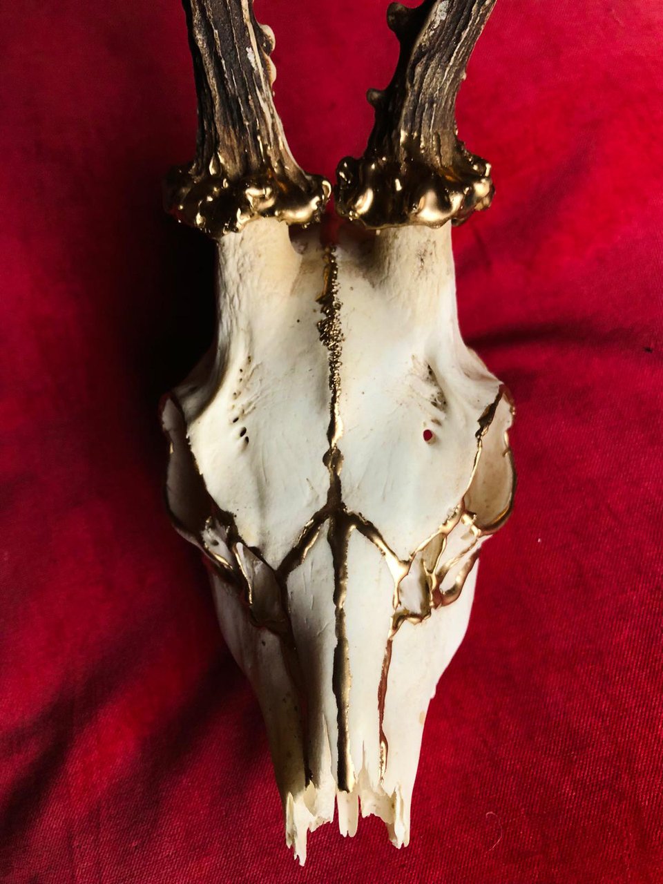 Dierlijke resten, hersteld met goud, tonen barsten als symbolen van kracht en kwetsbaarheid.